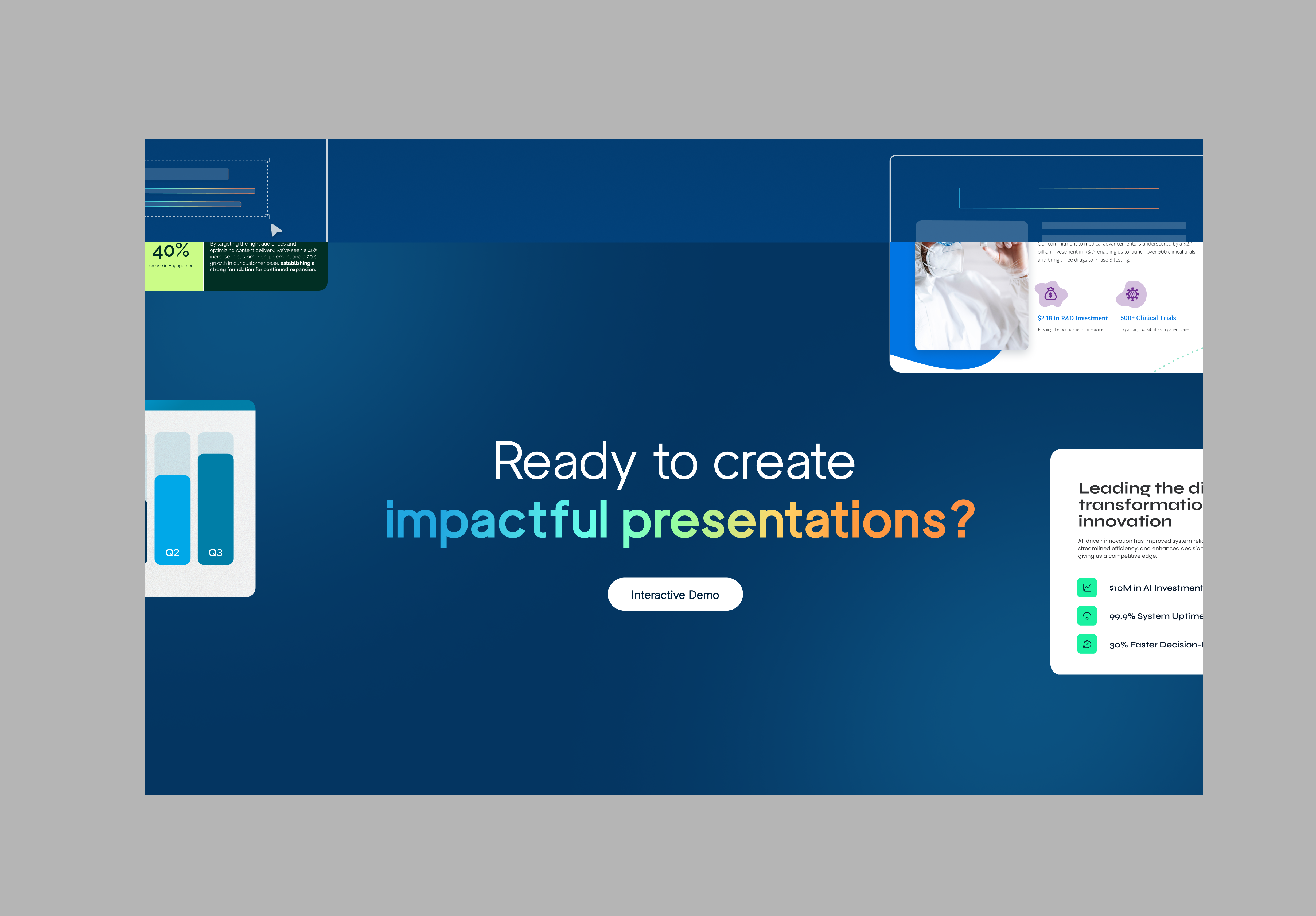 The goal was to craft a sleek and dynamic interface that mirrored Prezent’s speed, intelligence, and brand precision. I designed fluid responsive layouts, integrated motion graphics, and optimized mobile usability to enhance product storytelling. The final product reflects clarity, scalability, and innovation—positioning Prezent as a category-defining productivity tool.